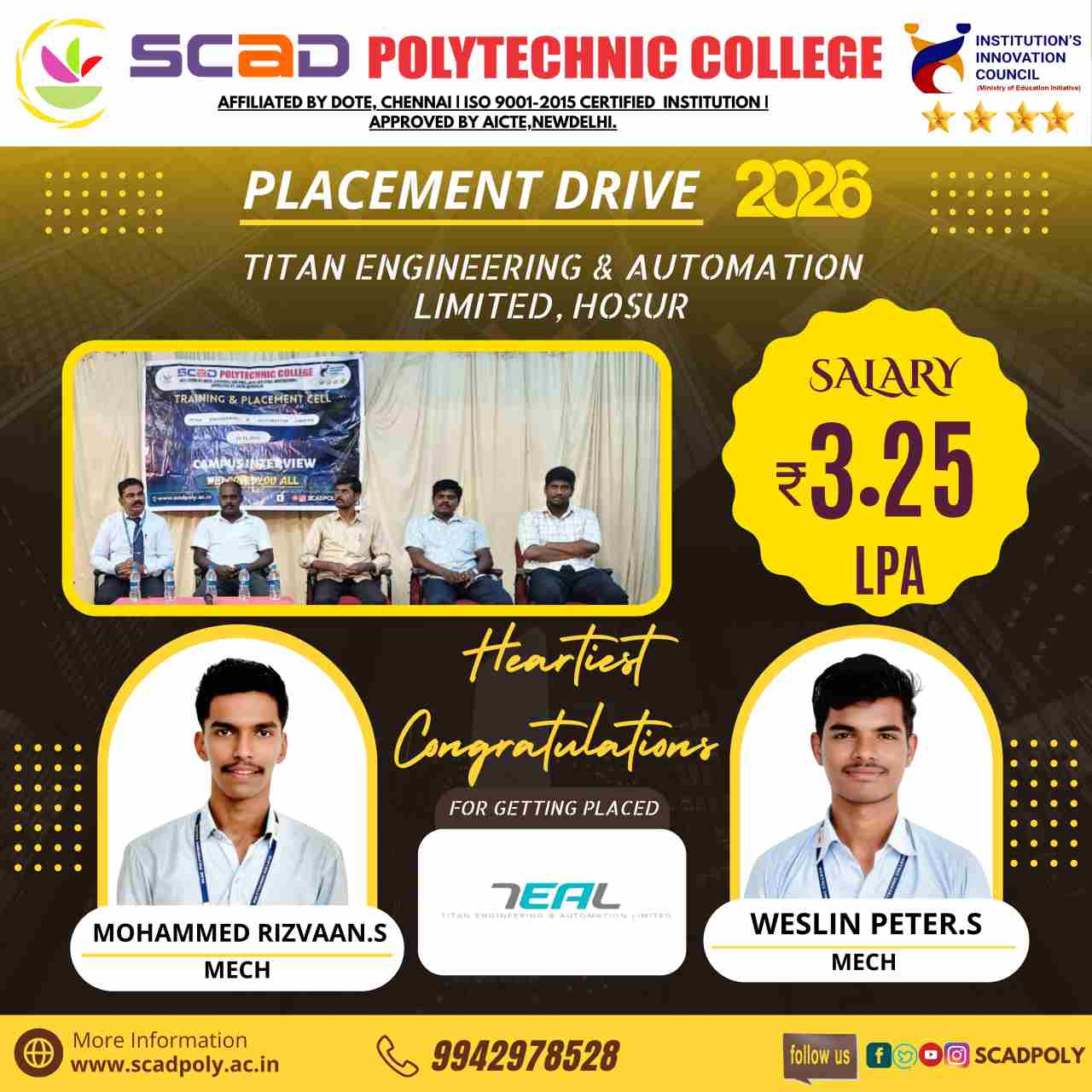 Placement Drive- TITAN Engineering & Automation Ltd., Hosur...