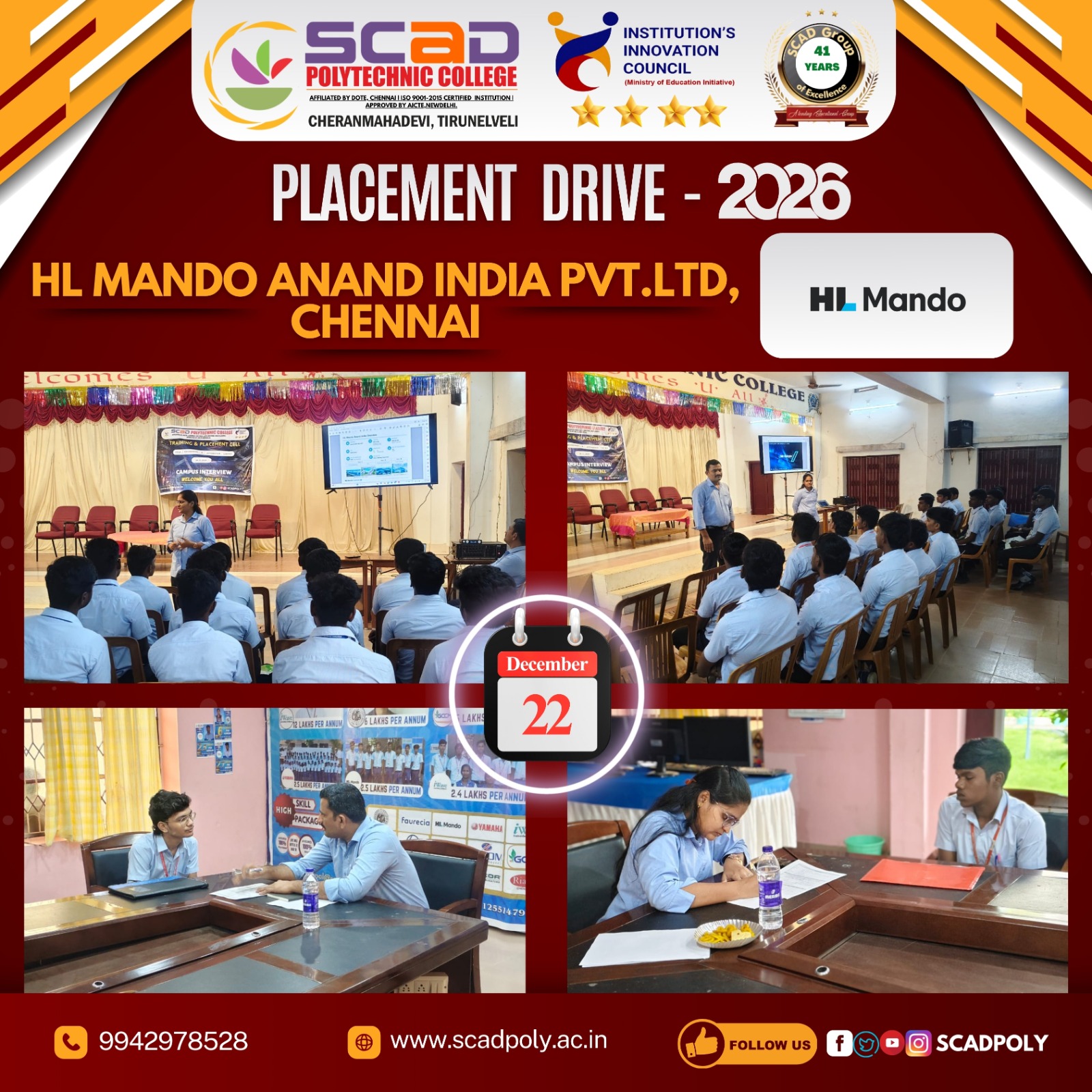 Placement Drive -2026 HL Mando Anand India Pvt Ltd., Chennai